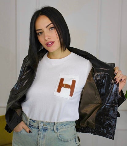 Detail t-shirt met leerlook H embleem